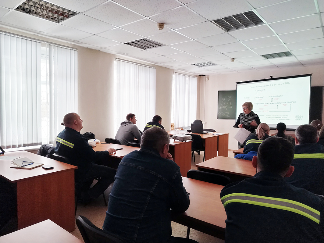 Продолжается начатое в феврале обучение руководителей и технологов завода по теме «Технология производства и служба кремнезёмистых огнеупоров». Тонкости выпуска традиционной заводской продукции на основе кристаллического кварцита специалисты постигают заново или освежают в памяти. За два месяца повысят квалификацию три группы обучающихся, в составе которых руководители производства всех уровней.